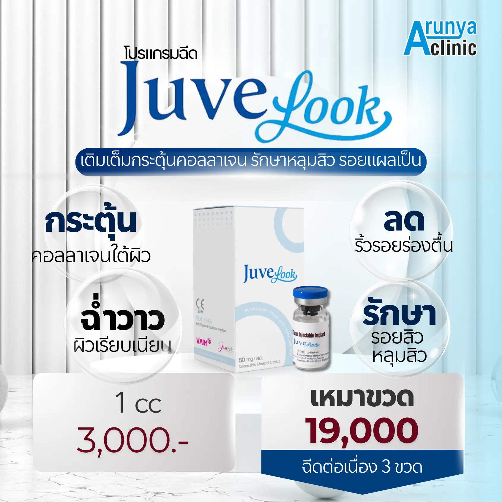 Juvelook คืออะไร? Juvelook คือ Hybrid Biostimulator รุ่นใหม่ ที่กำลังเป็นที่นิยมในวงการความงามของเกาหลีและทั่วโลก โดยมีส่วนผสมหลัก 2 ชนิด คือ:• Poly D-L-Lactic Acid (PDLLA) → สารกระตุ้นการสร้างคอลลาเจนตามธรรมชาติ จัดอยู่ในกลุ่ม Collagen Biostimulator• Non-Crosslinked Hyaluronic Acid →